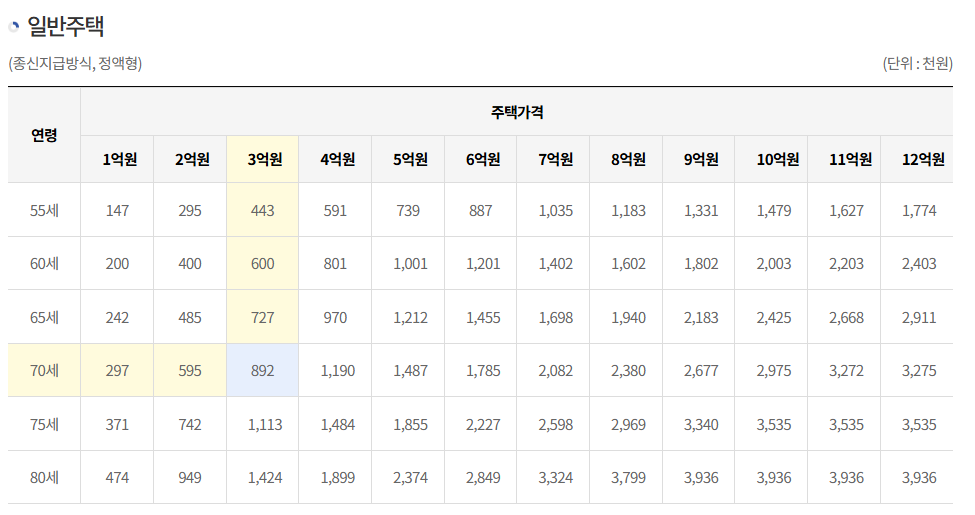 저희 부모님은 69세에 가입하셨는데, 4억 원대 아파트 기준으로