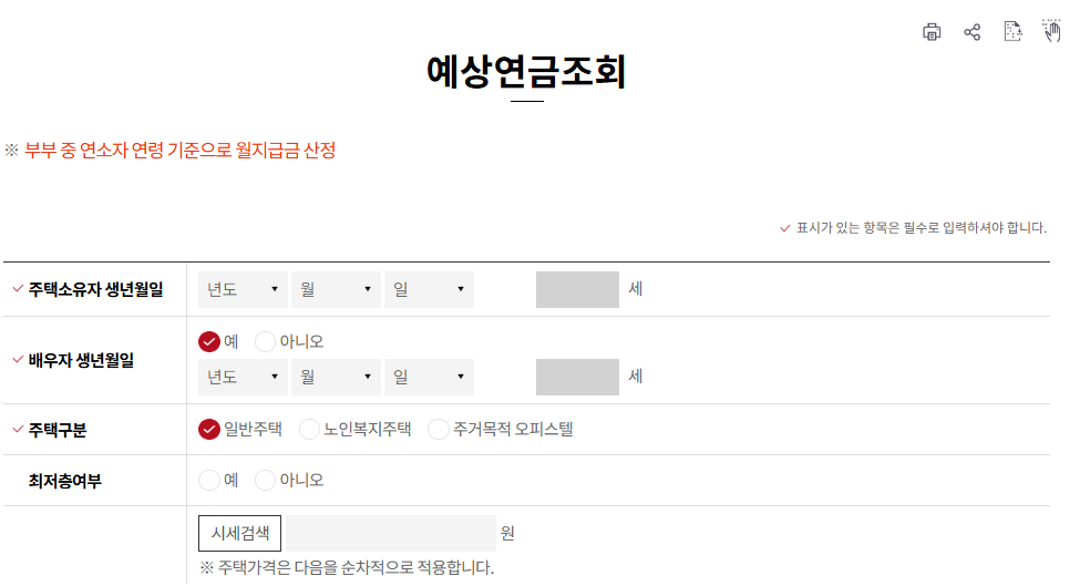 예상연금조회 | 주택연금 | 한국주택금융공사