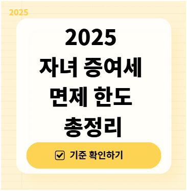 자녀 증여세 면제 한도는 부모라면 한 번쯤 꼭 확인하게 되는 주제입니다. “얼마까지는 세금 없이 줄 수 있을까?”, “언제 증여하는 게 좋을까?” 같은 질문이 자연스럽게 떠오르죠. 이 글에서는 2025년 기준으로 미성년 자녀, 성인 자녀에게 얼마나까지 증여세 없이 줄 수 있는지를 누구나 이해하기 쉽게 정리했습니다.