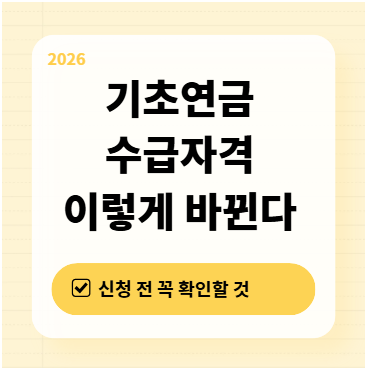 기초연금 수급자격은 생각보다 단순해 보이지만, 실제로는 나이, 소득, 재산, 공적연금 여부 등 여러 조건이 함께 작용합니다. 부모님이나 주변 어르신이 “나는 기초연금 받을 수 있을까?”라고 물어보시면, 어디서부터 설명해야 할지 막막할 때가 많습니다. 이 글에서는 2026년 기준 기초연금 수급자격 핵심 조건을 나이, 소득인정액, 국적·거주, 제외 대상 순서로 쉽게 정리했습니다. 아래 목차를 눌러 궁금한 부분부터 바로 보셔도 좋습니다.