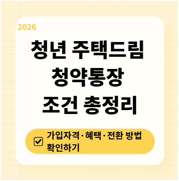 - 기존 청약통장(일반·청년우대형 등)도 조건을 충족한다면 청년 주택드림 청약통장으로 전환 가능