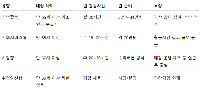 → 노인일자리는 기초연금 수급자에게 유리하지만, 기초연금 수급자가 아니어도 사회서비스형·시장형은 참여 가능합니다.